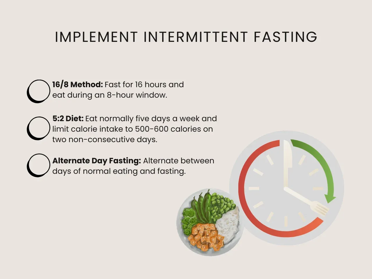 - Alternate Day Fasting: Alternate between days of normal eating and fasting. This method can be more challenging but effective for some individuals. On fasting days, you may consume minimal or no calories.